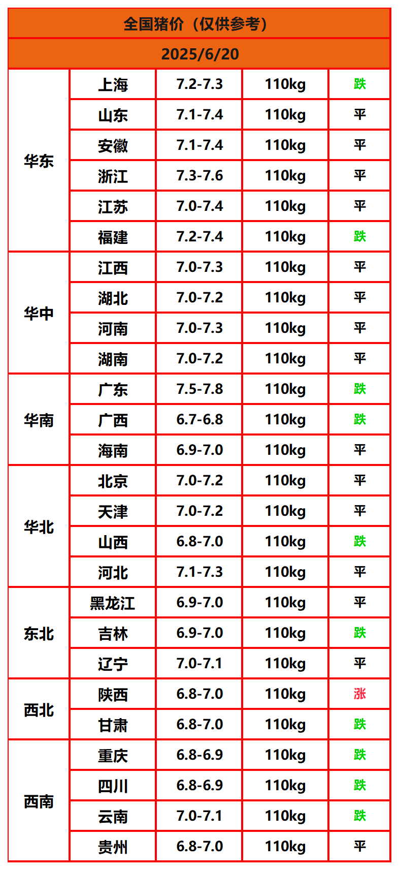 今日猪价 | 2025年6月20日全国猪价行情一览表!