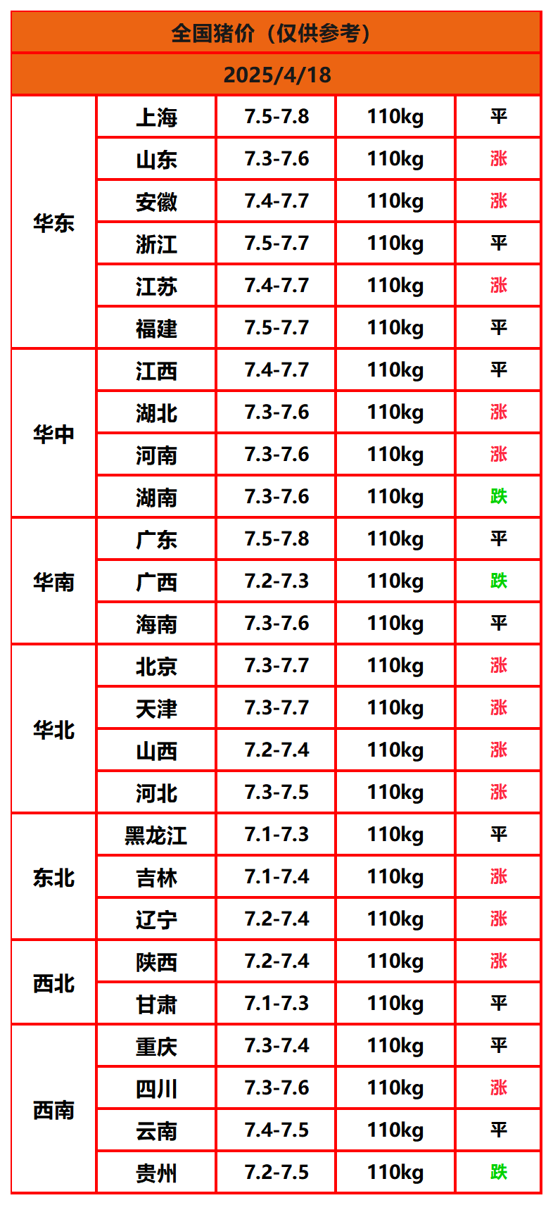 今日猪价 | 2025年4月18日全国猪价行情一览表!