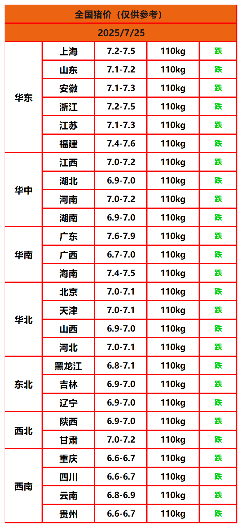 今日猪价 | 2025年7月25日全国猪价行情一览表!